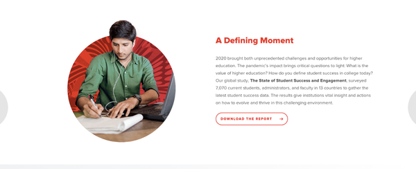 I wrote landing page copy to drive readers to download Canvas' 2020 global benchmark study, State of Student Success and Engagement in Higher Education.